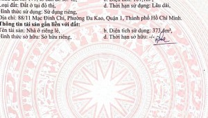 Bán nhà mặt tiền tại Số 88/3 Mạc Đĩnh Chi Phường Đa Kao Quận 1 TP. Hồ Chí Minh.