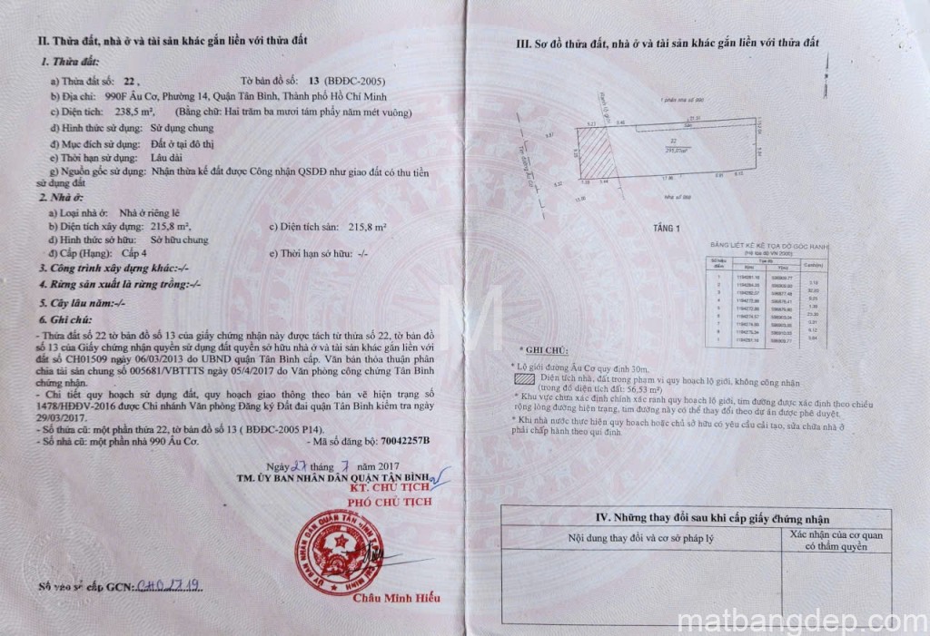 | Chi tiết: | Thông tin Bán toà nhà mặt tiền 990F Âu Cơ, Phường 14, Quận Tân Bình |