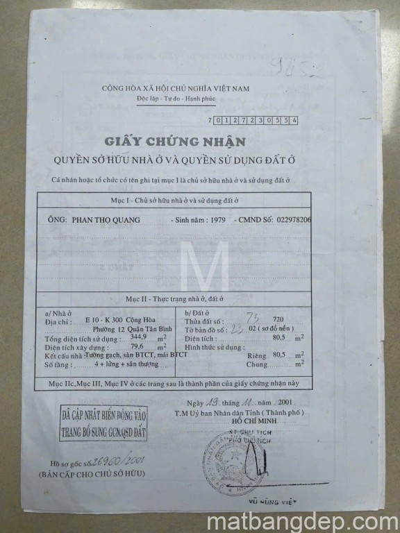 Bán nhà mặt tiền tại Số 22 A4 Phường 1 Quận Tân Bình TP. Hồ Chí Minh.