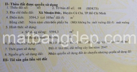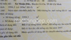 Bán đất thổ Xã Nhuận Đức, Huyện Củ Chi. DT: 50m x 120m, diện tích: 6000m2 giá: 28.5 tỷ