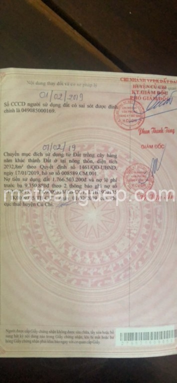 Bán đất thổ Đường Hồ Văn Tắng, Xã Tân Phú Trung, Huyện Củ Chi. DT: 10m x 42m, diện tích: 435m2 giá: 9.0 tỷ, 20.69 triệu/m2, 900 triệu/mét ngang