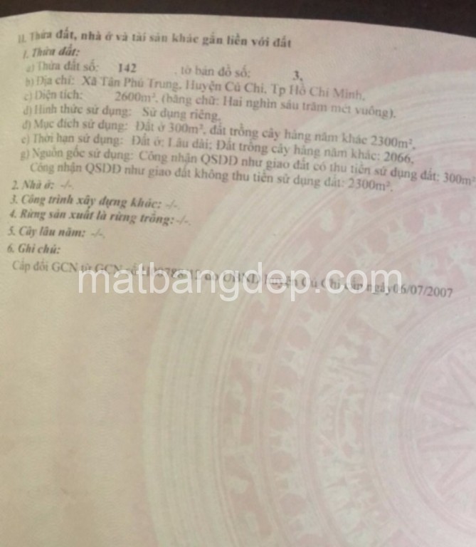 Bán đất thổ Đường Hồ Văn Tắng, Xã Tân Phú Trung, Huyện Củ Chi. DT: 14m x 45m, diện tích: 542m2 giá: 14.0 tỷ, 25.83 triệu/m2, 1000 triệu/mét ngang