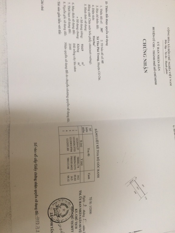 Bán đất thổ Xã Tân Phú Trung, Huyện Củ Chi. DT: 14m x 63m, diện tích: 914m2 giá: 10.0 tỷ, 10.94 triệu/m2, 714.29 triệu/mét ngang