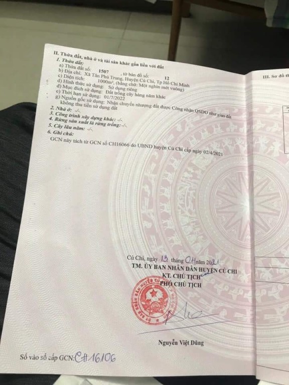 Bán nhà mặt tiền 104_42 Đường 1, Xã Tân Phú Trung, Huyện Củ Chi. DT: 21m x 35m, diện tích: 770m2, có 150m2 thổ, giá: 4.250 tỷĐường nhựa xe hơi tới đấtĐường vào đấthttps://www.google.com/maps/place/10%C2%B056'05.5%22N+106%C2%B032'38.2%22E/@10.9343955,106.5437274,261m/data=!3m1!1e3!4m5!3m4!1s0x0:0x0!8m2!3d10.93487!4d106.54393?hl=vi-VN