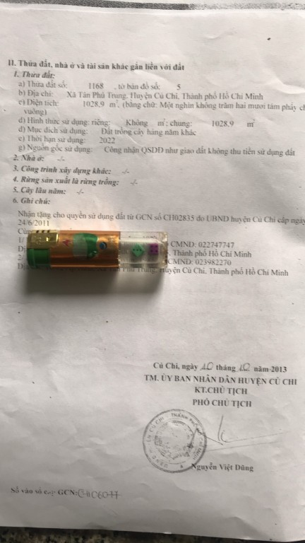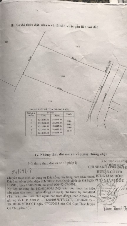 Bán đất thổ Xã Tân Phú Trung, Huyện Củ Chi. DT: 21m x 50m, diện tích: 1028m2 giá: 13.0 tỷ, 12.65 triệu/m2, 619.05 triệu/mét ngang
