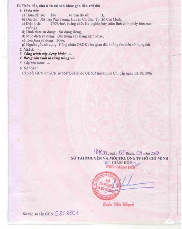 Bán đất thổ Xã Tân Phú Trung, Huyện Củ Chi. DT: 52m x 45m, diện tích: 2709m2 giá: 20.0 tỷ, Đất quy hoạch khu dân cư, đường trãi đá xe hơi tới đất Đường vào đất https://www.google.com/maps/place/10%C2%B057'56.9%22N+106%C2%B033'03.1%22E/@10.9656662,106.5443911,15.7z/data=!4m5!3m4!1s0x0:0xe455761d2a858b15!8m2!3d10.9657938!4d106.5508715 |