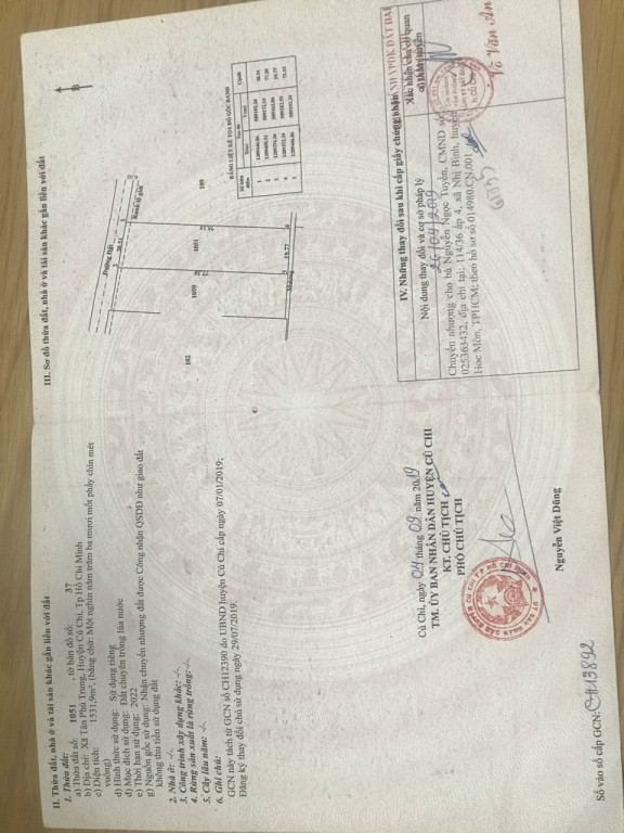 Bán đất thổ Xã Tân Phú Trung, Huyện Củ Chi. DT: 20m x 77m, diện tích: 1531m2 giá: 3.5 tỷ, 2.29 triệu/m2, 175 triệu/mét ngang
