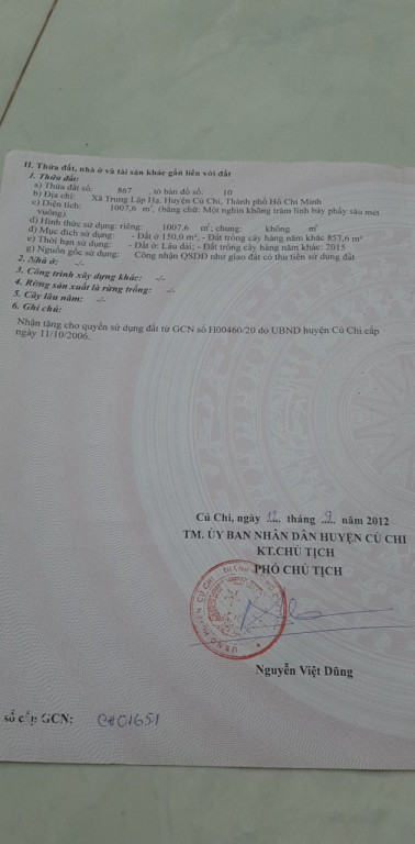 Bán nhà Thửa: 153Tờ: 24 Tỉnh Lộ 2 Trung Lập Hạ Huyện Củ Chi