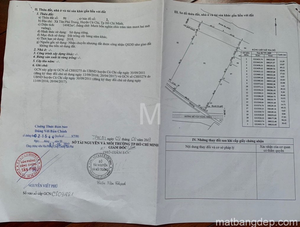 Bán đất thổ Đường Hồ Văn Tắng, Xã Tân Phú Trung, Huyện Củ Chi. DT: 14m x 45m, diện tích: 542m2 giá: 14.0 tỷ, 25.83 triệu/m2, 1000 triệu/mét ngang