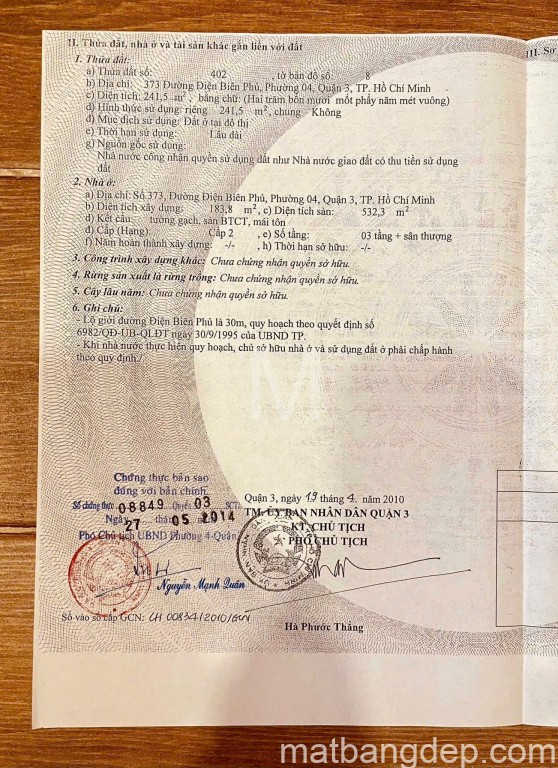 Bán nhà 373 Điện Biên Phủ Phường 4 Quận 3