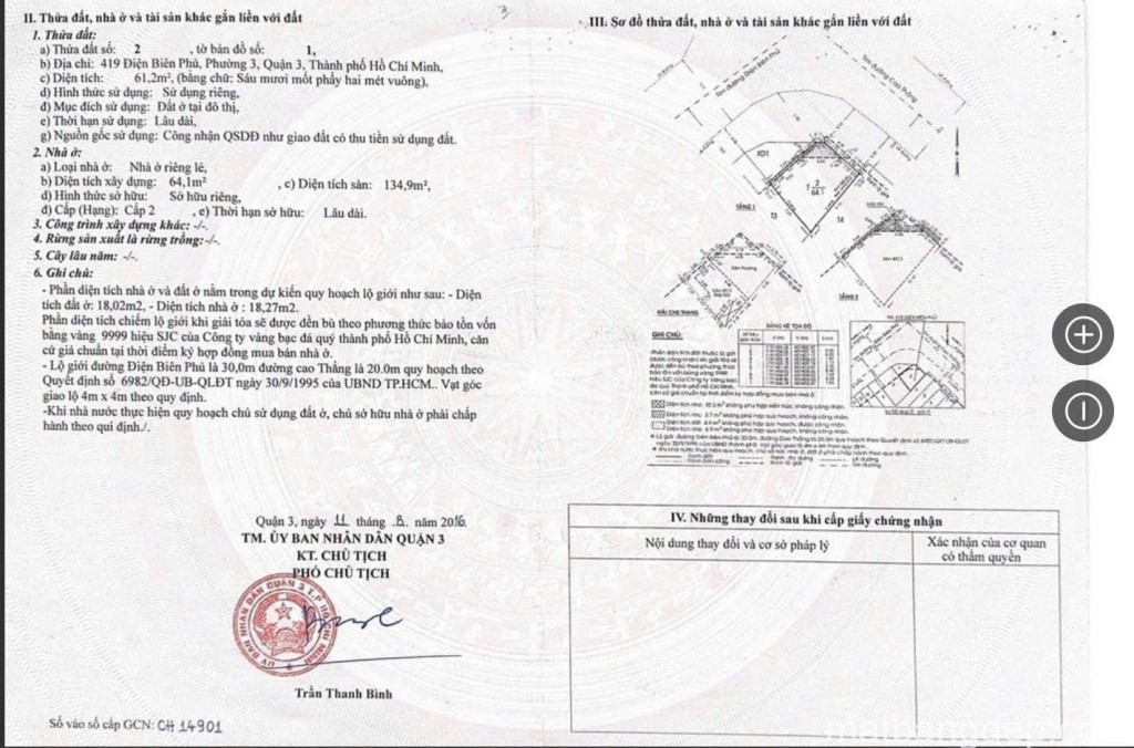 Bán nhà 419 Điện Biên Phủ Phường 3 Quận 3