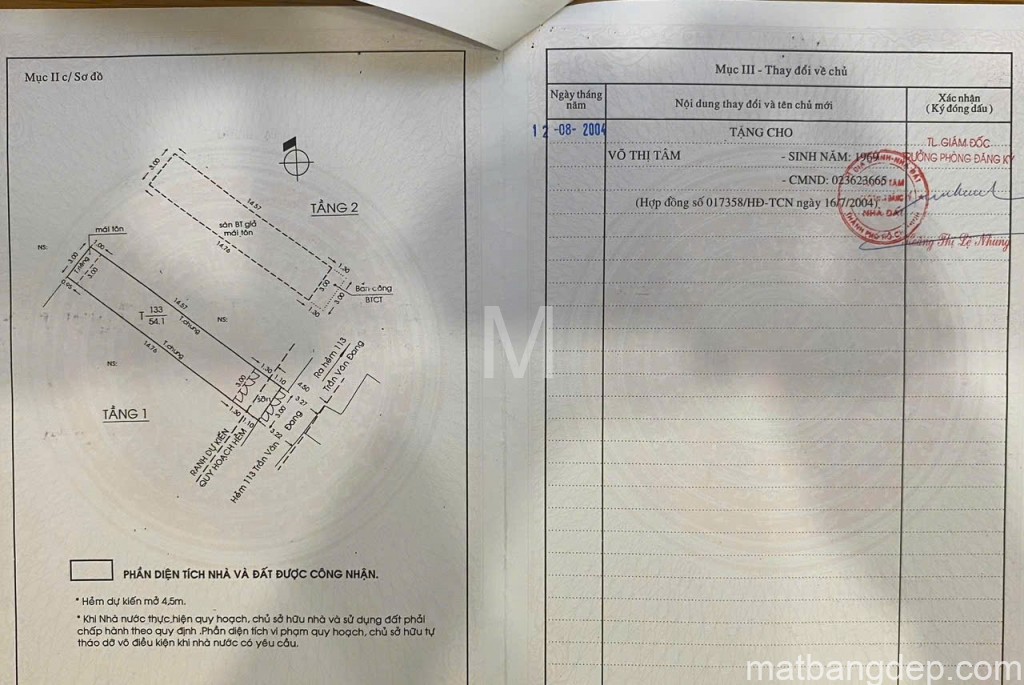 BÁN NHÀ MẶT TIỀN Số 49/4 Trần Văn Đang Phường 9 Quận 3 TP. Hồ Chí Minh – GẦN CÔNG VIÊN – GIÁ TỐT 5,5 TỶ