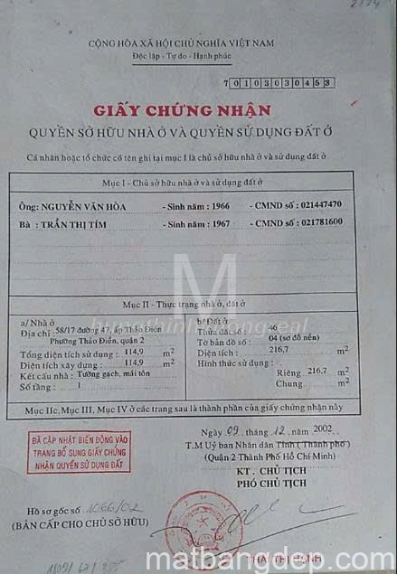 Bán nhà 58/17 Đường 47 Phường Thảo Điền Quận 2