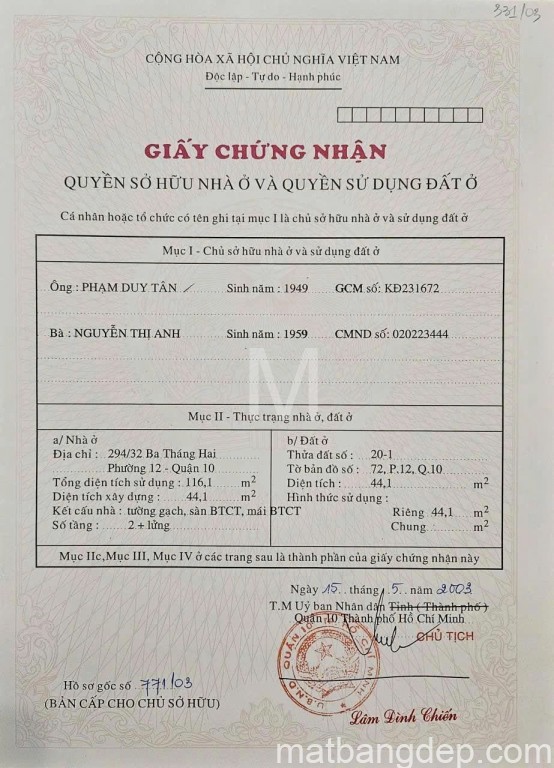 606/122 Ba Tháng Hai 71 5 3 23 15.5 tỷ Phường 8 Quận 10 10 đến 20