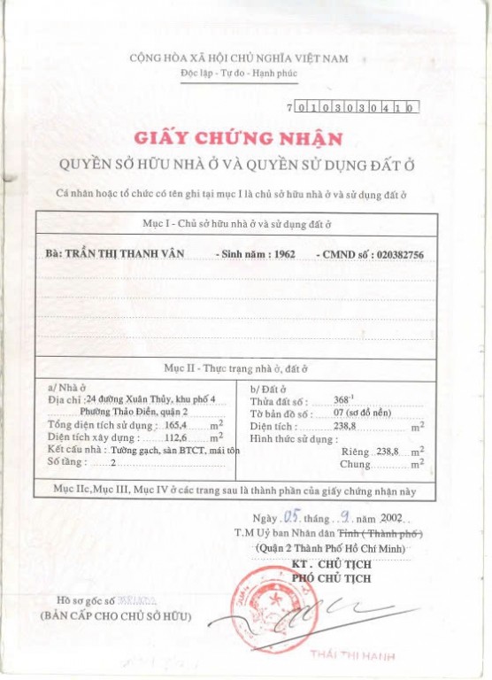 Bán nhà 24 Xuân Thủy Phường Thảo Điền Quận 2