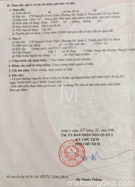Thông tin Bán toà nhà văn phòng 278 Đường Nguyễn Đình Chiểu, Phường Võ Thị Sáu, Quận 3 (nay là phường Xuân Hoà) + Địa chỉ: 278 Đường Nguyễn Đình Chiểu, Phường Võ Thị Sáu, Quận 3 |