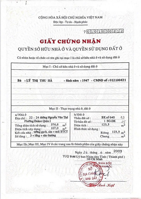 Địa chỉ: | 22-24 Nguyễn Văn Thủ Đa Kao Quận 1 |